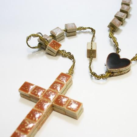 陶製ロザリオは、1カ国目のスペインで、雑貨バイヤーがレイアール広場の蚤の市で買い付けたもの。